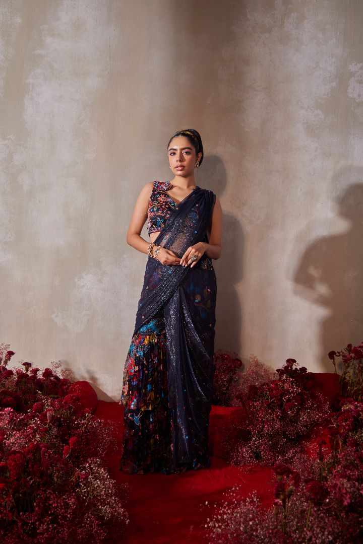 Tarini Vij's Label epitomizes the seamless integration of Indian heritage with contemporary fashion sensibilities. With a meticulous focus on innovative fusion, the label's designs weave together traditional Indian elements with modern western silhouettes, creating a distinctive style that is both flirty and dramatic yet effortlessly lucid.